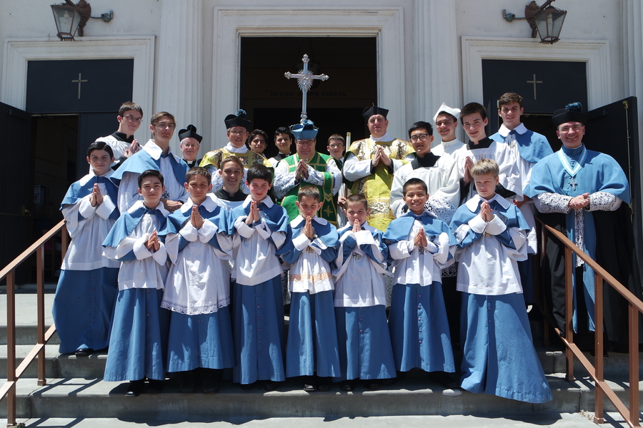 Monsignor Gilles Wach, the founder and Prior General of the Institute of Christ the King, Sovereign Priest, accompanied by Canon Talarico, the Provincial of the Institute in the United States, made a first ever official visitation to the Immaculate Heart of Mary Oratory in San Jose, California on June 12, 2016. Our Oratory family received them with great joy, knowing what a sacrifice it was for each of them to come so far, Monsignor Wach traveling from Italy and Canon Talarico from Chicago. The Immaculate Heart of Mary Oratory, having been newly transplanted to Five Wounds Portuguese National Church in the recent past in December 2013 by our local ordinary, Bishop McGrath, keenly felt the blessing that the presence and guidance of our founder signified.