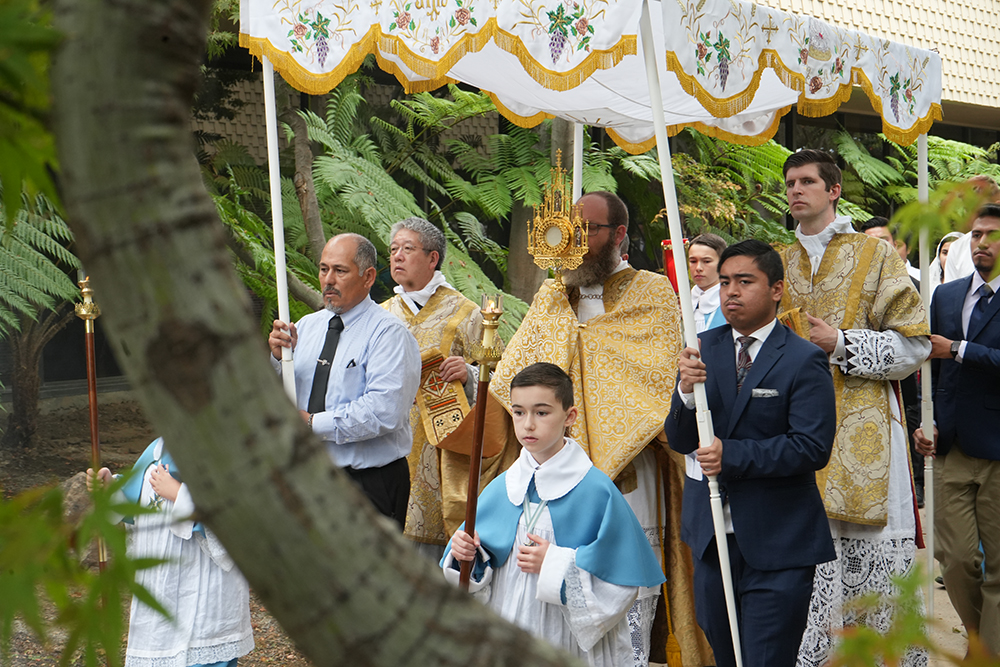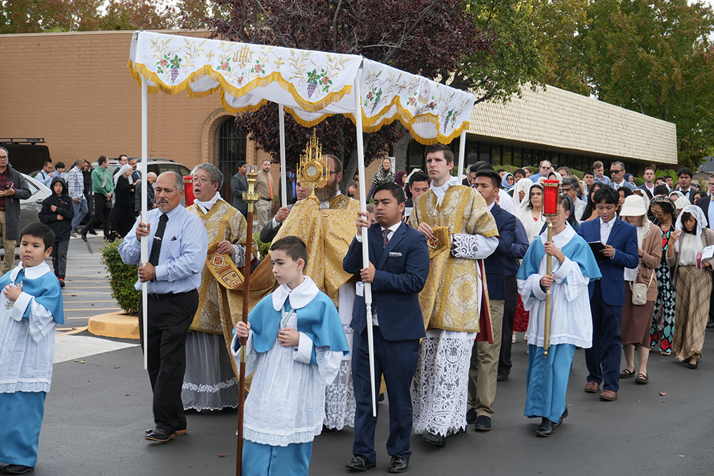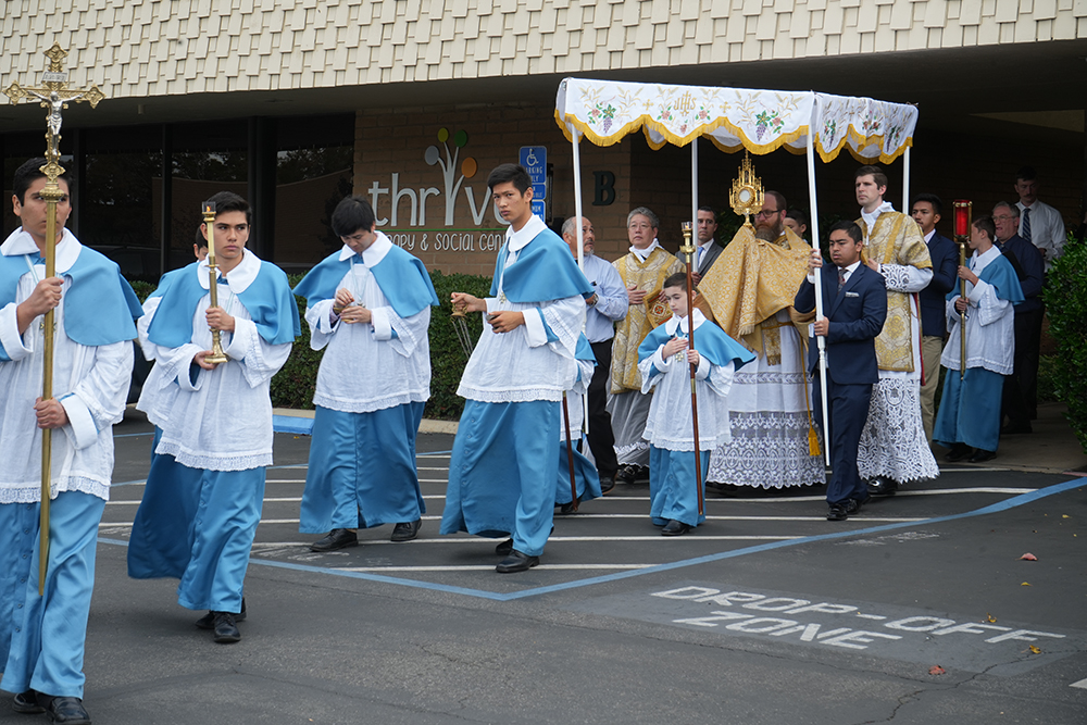 “By public adoration of the Blessed Sacrament exposed and by solemn processions, men unite in paying homage to Christ, whom God has given them for their King. It is by a divine inspiration that the people of Christ bring forth Jesus from his silent hiding-place in the church, and carry him in triumph through the streets of the city, so that he whom men refused to receive when he came unto his own, may now receive in full his kingly rights.” - Pope Pius XI, Quas Primas, 1925